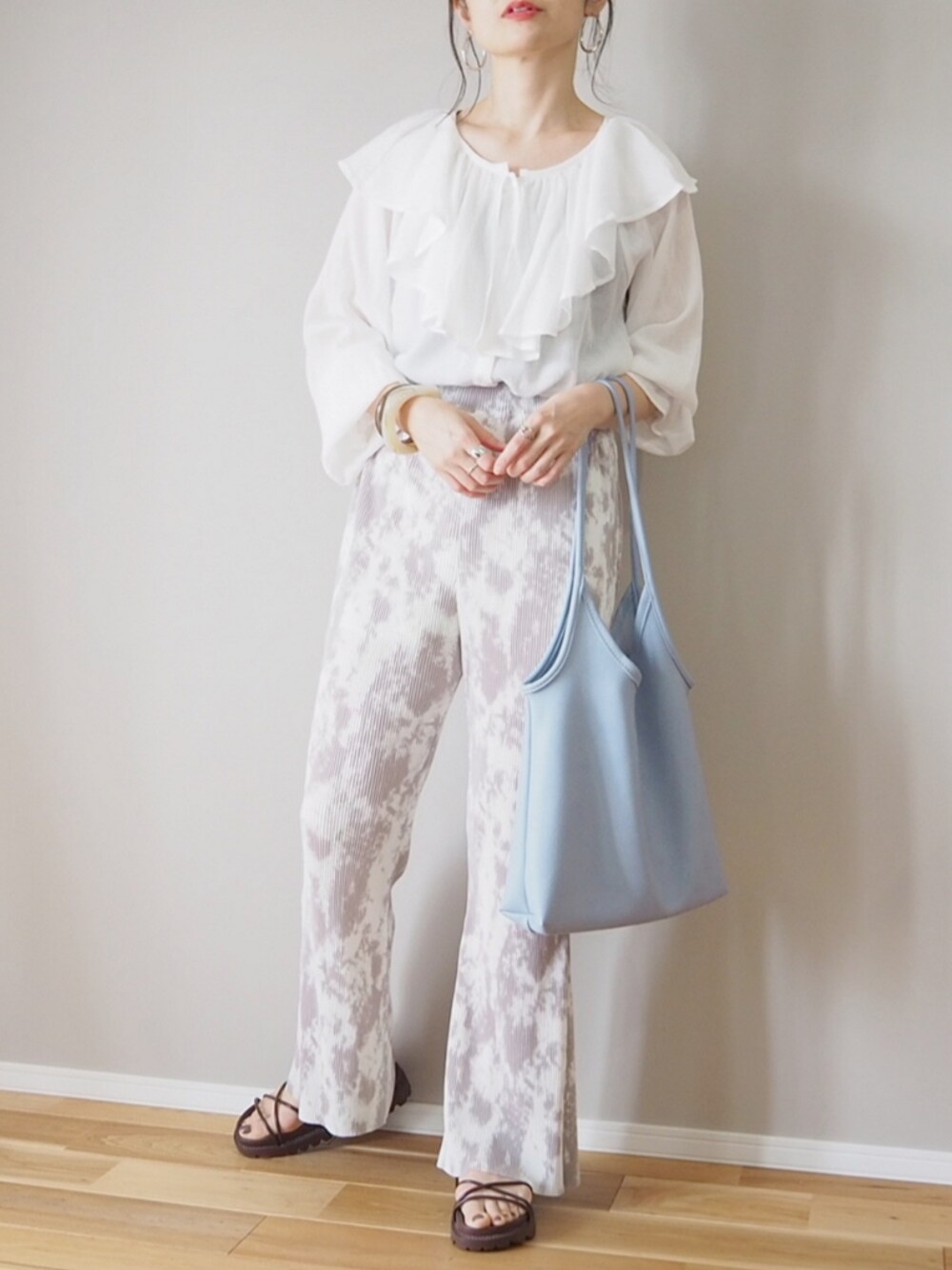 こんにちは🌿 見てくださりありがとうございます。 ▪°┄┄┄┄┄┄┄┄┄┄┄┄┄┄┄┄┄┄┄°▪ □ Birthday room └ 楊柳シフォンラッフルチュニック 目を惹くくらいのビッグカラー♡ 柔らかくてさらっとした楊柳のチュニックです。 サロペ合わせしても可愛いし、 デニムにインしてカジュアルダウンしてもいいし、 今回見たいにきれいめボトムに合わせて大人っぽくきても♡ これ1枚で着回したくさん楽しめます♪ 本日クーポン使えます🌼 ► Chiaro (AN closet) └ タイダイ柄楊柳プリーツワイドフレアパンツ ► LAC VERT └ PUレザートートバッグ ► Vivian └ 厚底メニー華奢ストラップスポーツサンダル ▪°┄┄┄┄┄┄┄┄┄┄┄┄┄┄┄┄┄┄┄°▪ #pr Instagram ⇒ panawear77