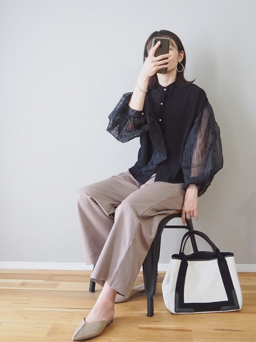panaのシャツ/ブラウス「ボリュームスリーブデザインシアーシャツ」を使ったコーディネート