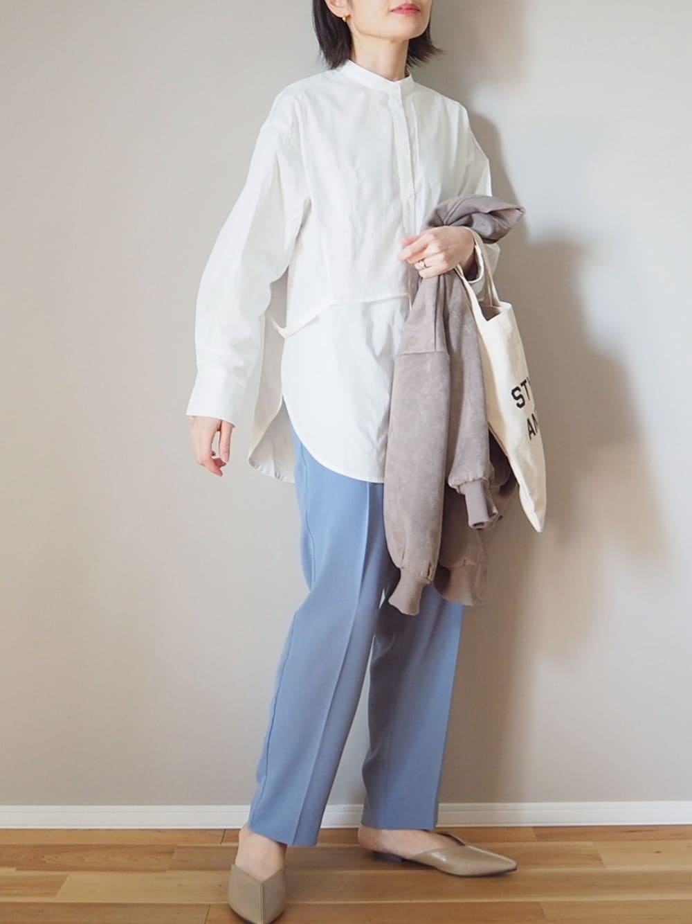 panaのシャツ/ブラウス「シアーポプリンサイドレイヤードデザインシャツ」を使ったコーディネート