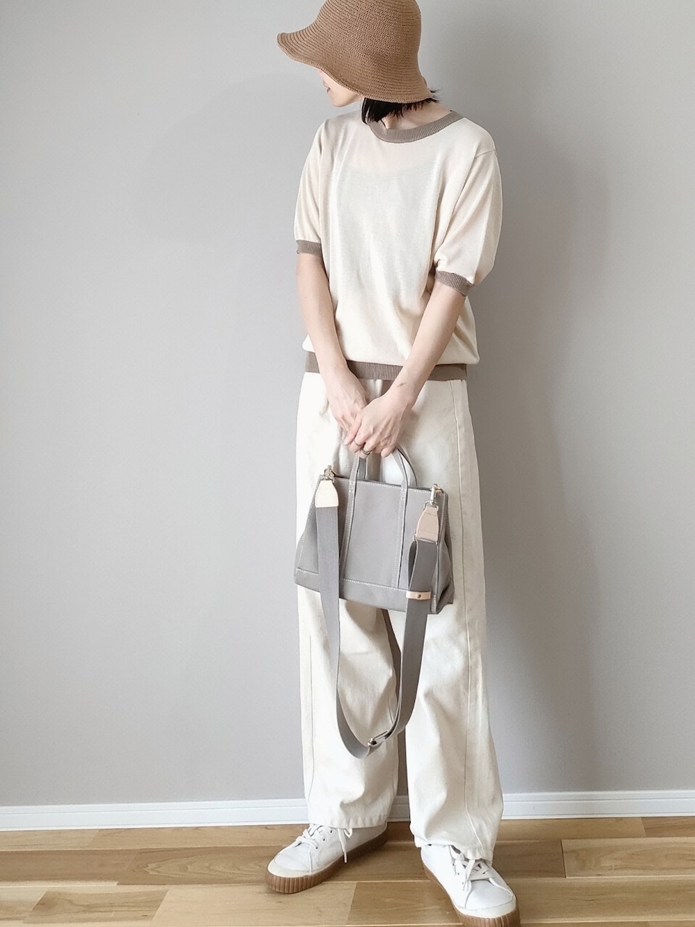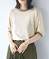 panaのニット/セーター「配色リンガー半袖ニットプルオーバー」を使ったコーディネート