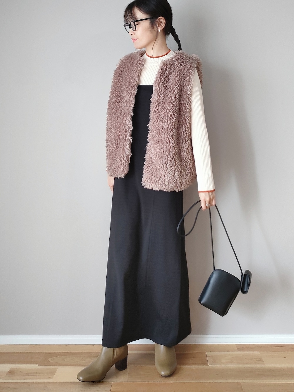 panaのベスト「【ふわモコ軽量!】フェイクシープファーベスト」を使ったコーディネート