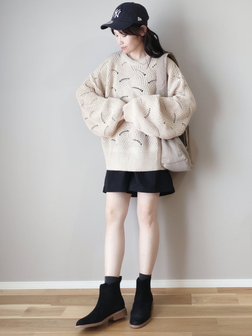 panaのニット/セーター「リーフモチーフボリュームニット」を使ったコーディネート