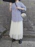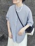 panaのシャツ/ブラウス「アソート柄 ボリュームスリーブバンドカラー半袖シャツ」を使ったコーディネート