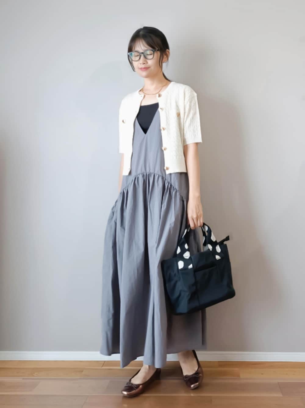 panaのカーディガン/ボレロ「金釦半袖ケーブルカーディガン」を使ったコーディネート