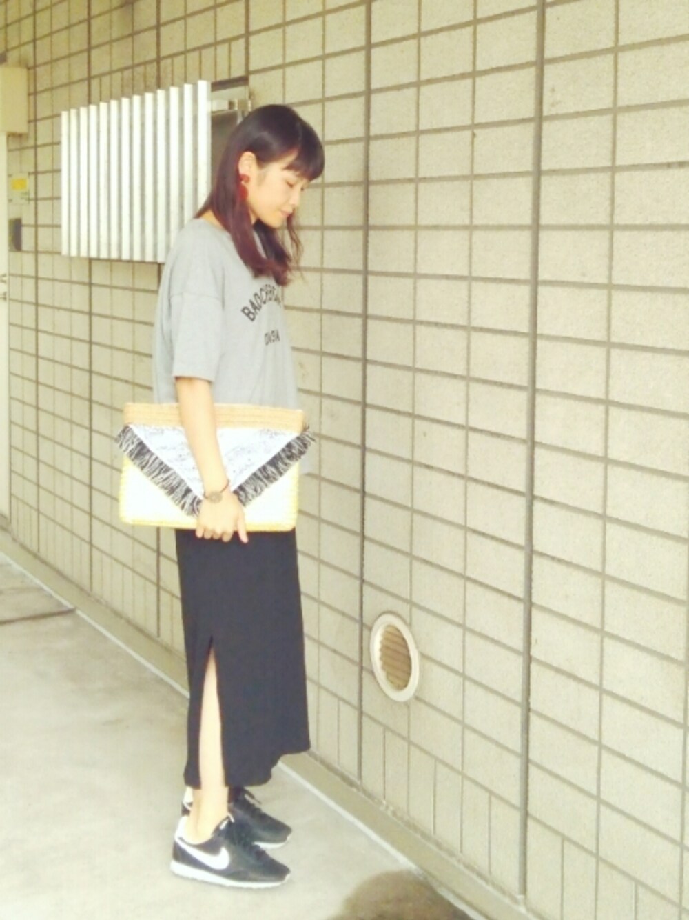 こんばんは! haco!のキャミワンピにオーガニックコットンのTシャツを合わせてみました🎵 ワンピのスリットがポイントです。 リュックを合わせるのも可愛いと思いましたが、 今回はフリンジ付きのクラッチバッグを合わせました! 色合いは全体的に暗めですが、大ぶりのイヤリングを合わせたり、 クラッチバッグで締めて、重たい印象にならないように気をつけました😊
