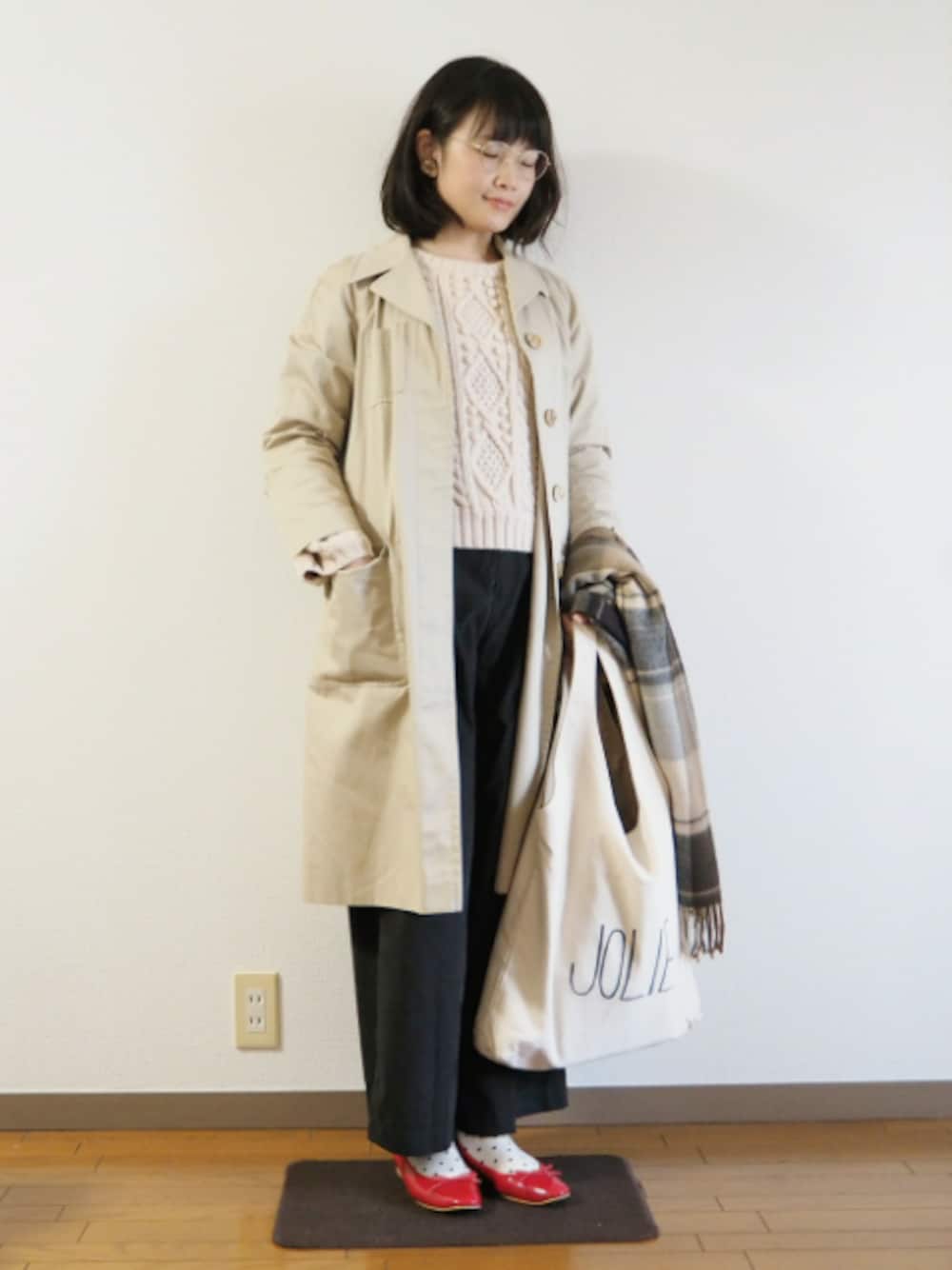 こんばんは。 今日はモノトーンに赤の挿し色を入れたくて このコーデになりました😌 足元は白ソックスじゃつまらないかなと思い ドットの靴下を選びました! 赤と白黒ドットってすごく上がります🙆✨