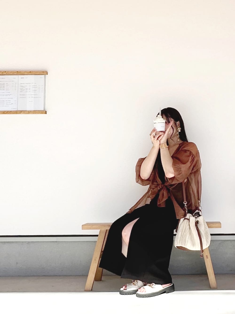 カフェコーデ𖠚 33℃☀️🫠 ブラウン×ブラックでちょっと大人っぽくꪔ̤̮ 夜は花火に行ってきた✌︎