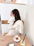カフェコーデ𖠚ˎˊ˗ 秋ver.🍂 25℃ ちょっと涼しくなってきて、 やっと秋服着れて嬉しい♡⸝⸝⸝⸝ オールホワイトコーデ♥ フリルが可愛くて手元映えるの😳