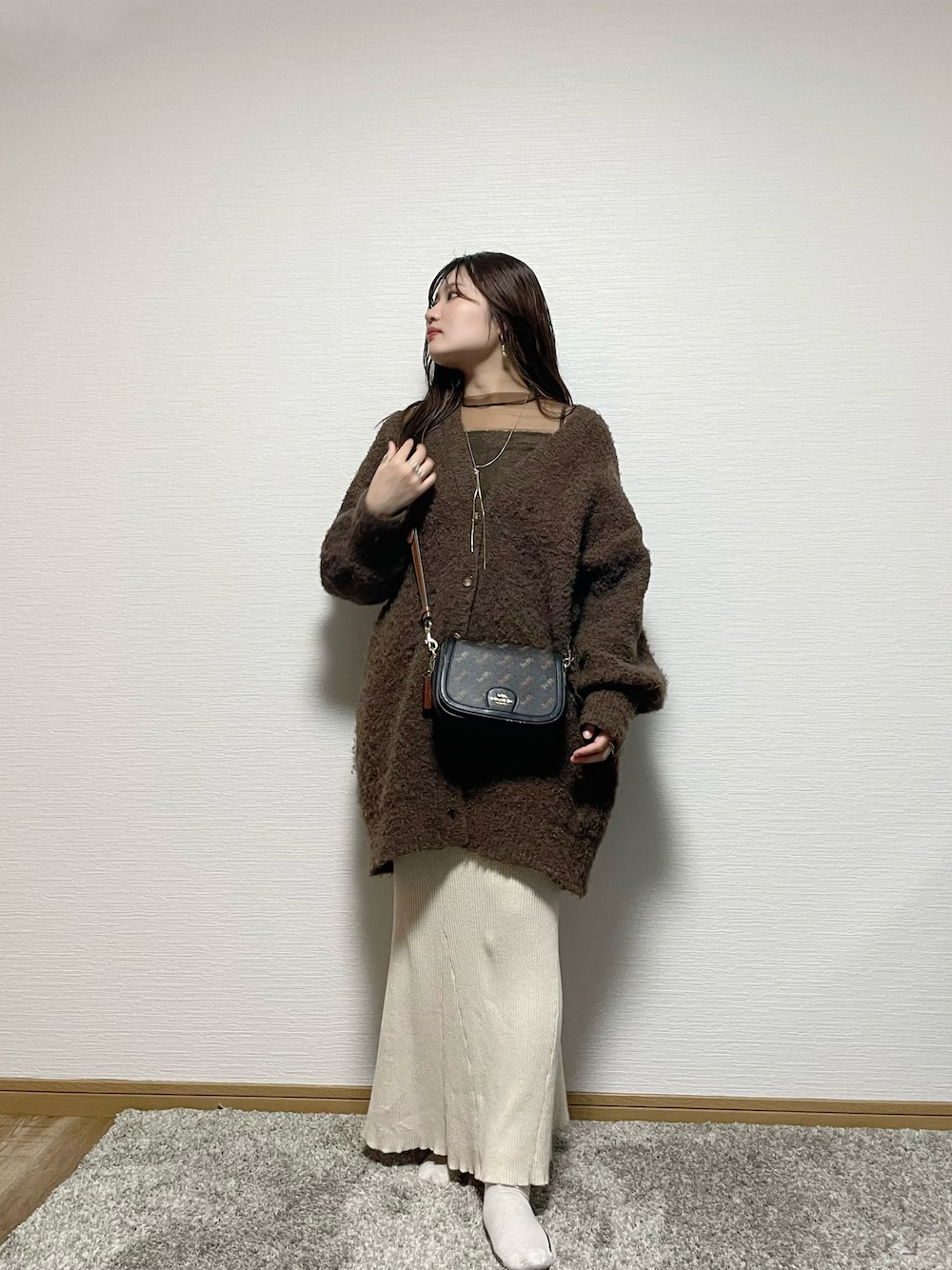 カフェコーデ𖠚ˎˊ˗ 15℃☀️ ちょっと大人っぽい感じのカフェコーデにっ 中にシアーインナーきてちらっと肌見せ〻
