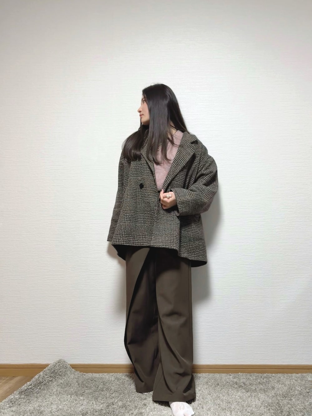 panchanᙏ̤̫͚のテーラードジャケット「1枚で主役級“ジャコット”。グレンチェック ダブル ショート丈 ジャケットコート」を使ったコーディネート