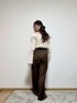 雨の日カフェコーデ𖠚.∘ 18℃ ☂️ 雨が降っててちょっと今日は肌寒かったから ニットトップスにビスチェ合わせ\♡︎/