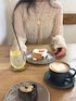 初夏のカフェコーデ♡⸝⸝ 21℃🌥️ 靴下もレースにして甘めのコーデにしたっ♥ トップス可愛すぎるし、色んな着方ができそう〜ෆ̈