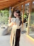 夏の淡色コーデ𖠚ˎˊ˗ 30℃☀️ 長めのフリンジが入ってるニットトップスに 変形ビスチェをレイヤードしてみたˎˊ˗ そして、このパンツ気に入ってて 履くだけで着こなしてる感じでます✌︎