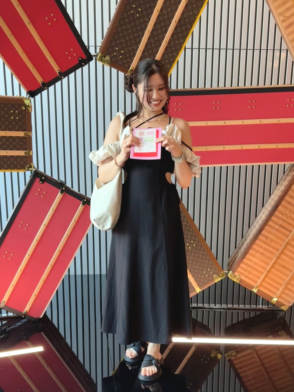 お出かけキレイめコーデˎˊ˗ 33℃☀️ キャミワンピにこのかわいいビスチェを組み合わせていった\♡︎/ このビスチェ可愛すぎる〜\♡︎/