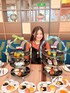 Halloweenカフェコーデˎˊ˗ 26℃☀️ オレンジ×黒でハロウィンぽく♥🎃 透け感素材とふわふわビスチェを合わせて 下はベロア素材のスカートにっˎˊ˗