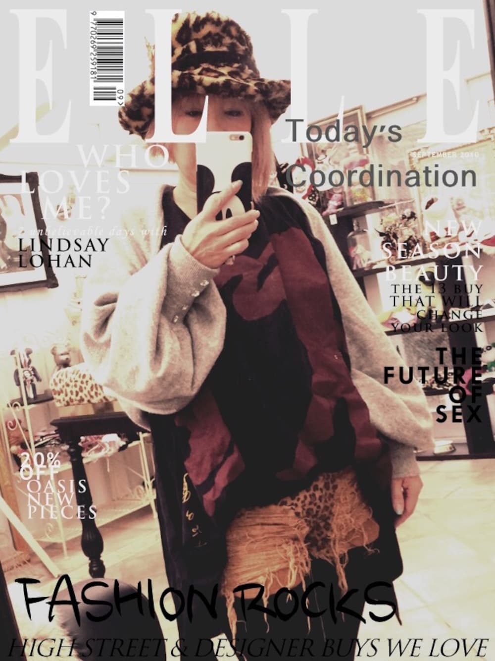 Vivian Westwood のデカTEEにCandy のダメージショーパン! お袖がドルマンな大きいTEEなので羽織りものは、カシミアのドルマンカーデ!帽子はANNA SUIのレオパードでパンツと合わせました。