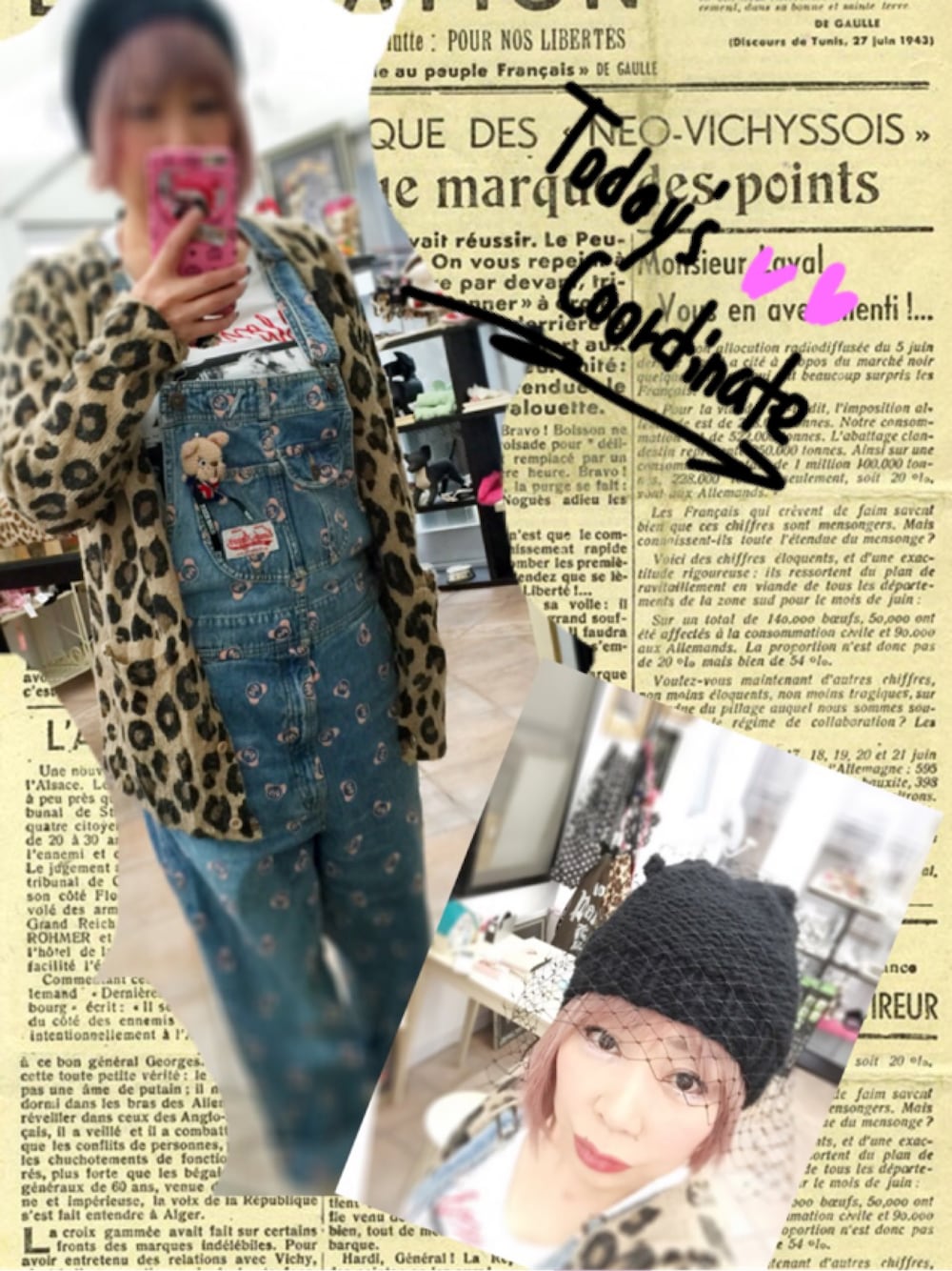 今日は寒かった〜〜ん! オーバーオールにレオパード! ネット付きニット帽はヘビロテです