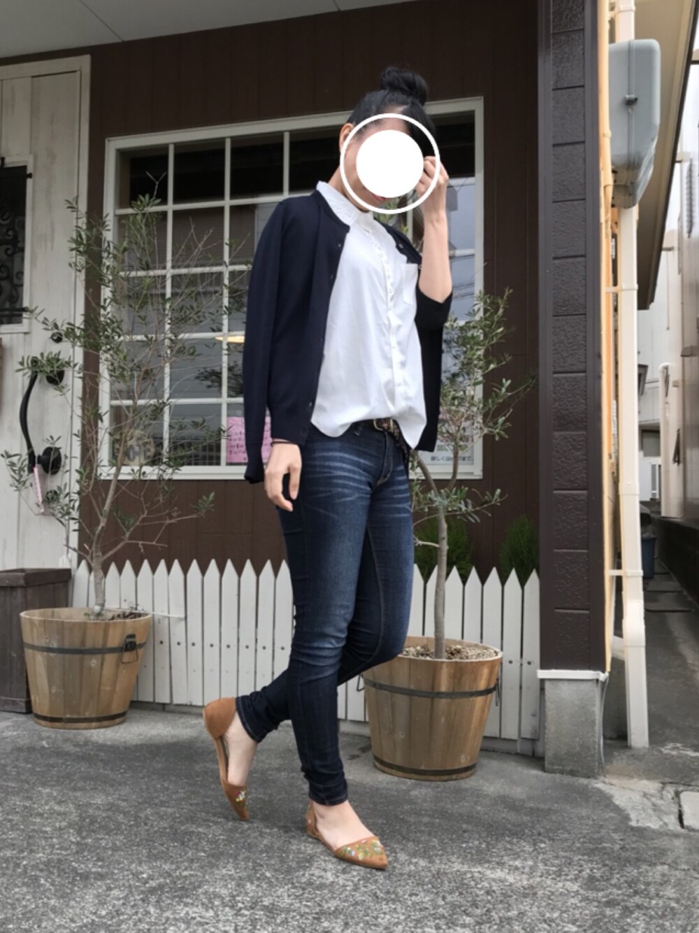 春だ!と思って薄着にしたらめっちゃ寒かった… 😫 シャツは襟の形と飾りボタンがお気に入り。