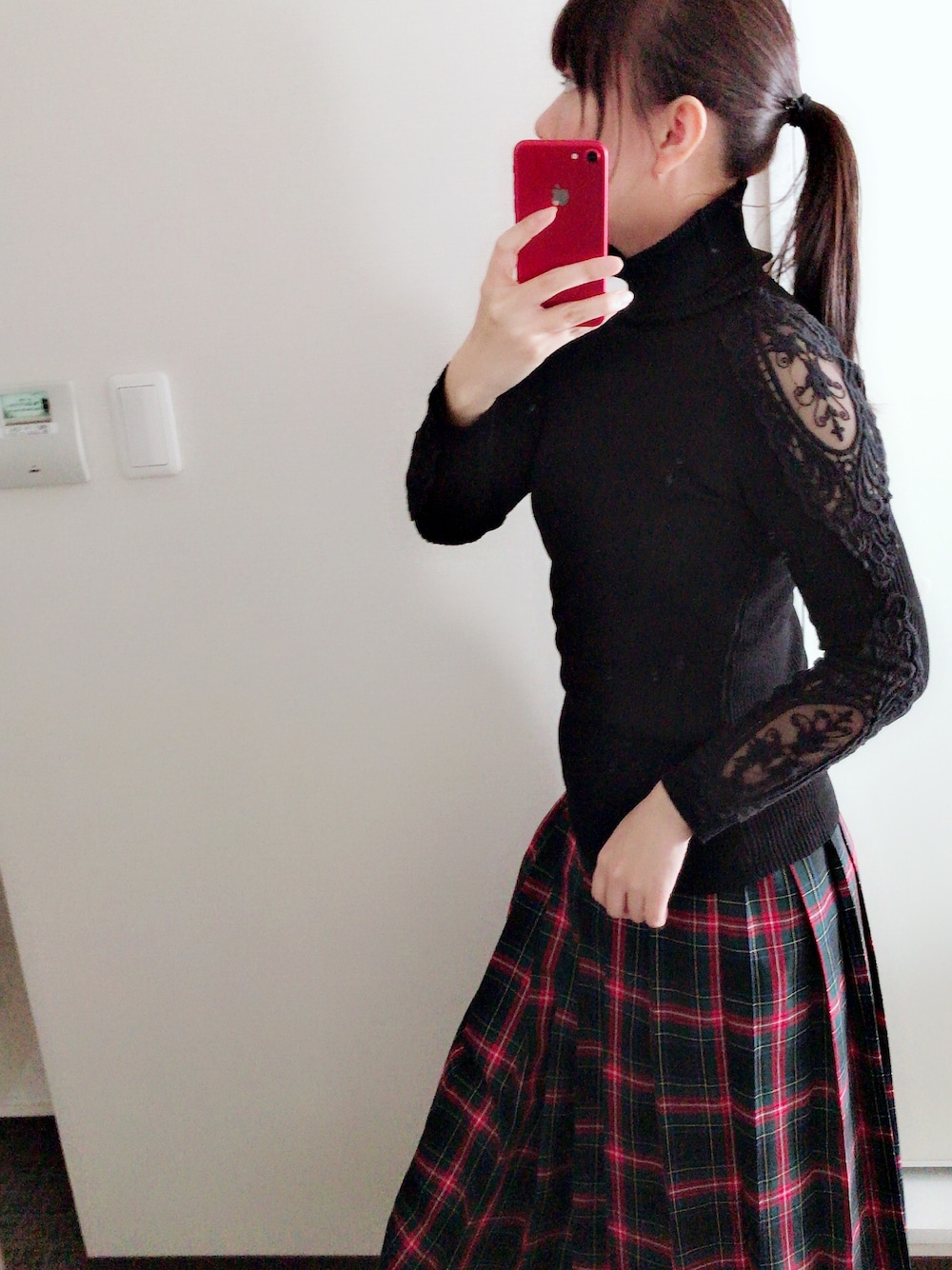 寒いのに、肩を出す服を選んでしまった😂 レースが上品で着やすいです。