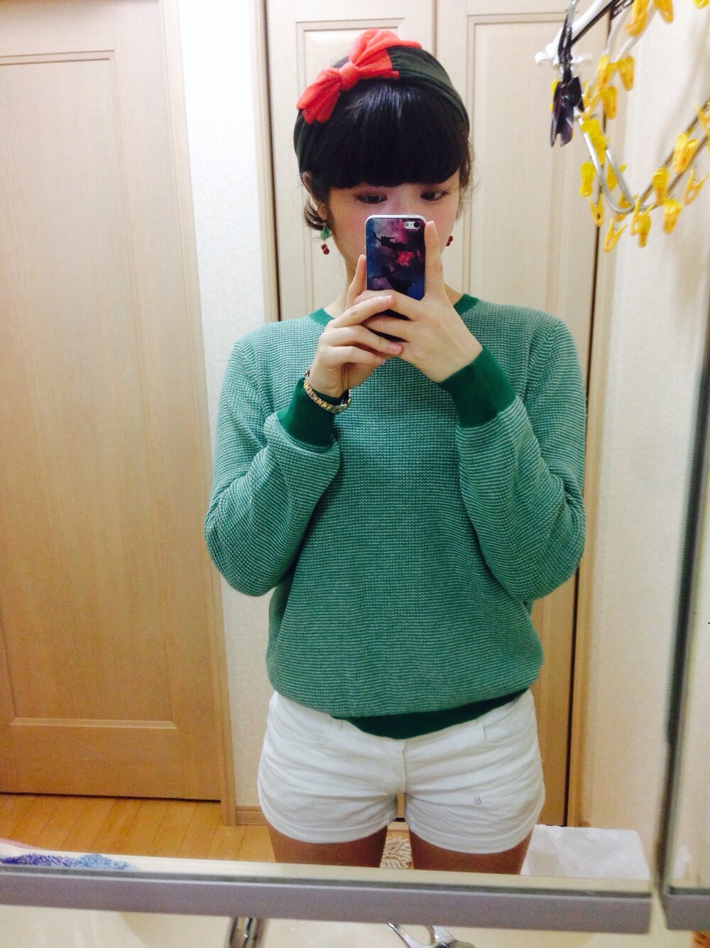 ホワイトのジョーパンはヘビロテします(´・Д・)」 ニット:LEPSIM ショートパンツ:H&M ヘアバンド:GLOBALWORK