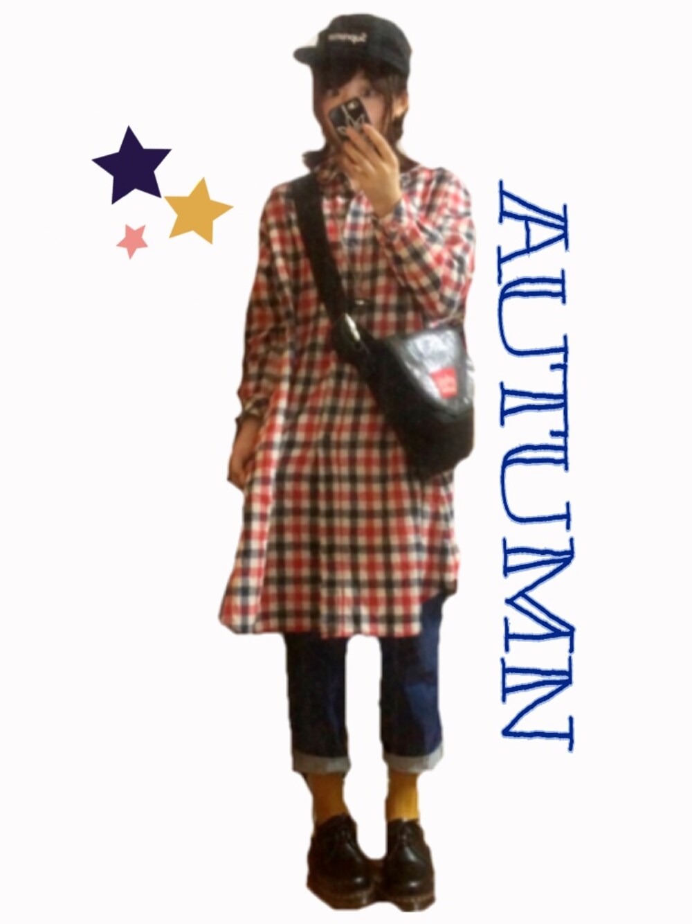 チェックシャツワンピースで秋っぽいコーデにしてみました。 マスタードカラーの靴下も買ったのではいてみました。 おばあちゃんがだいすきな色です。 supremeのキャップもかぶりました。