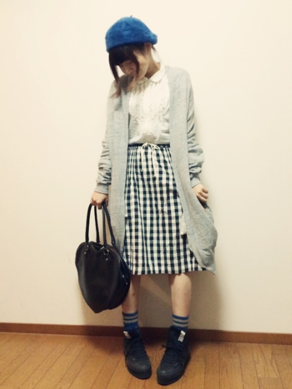 『モノトーン+アオ』 モノトーンな感じのコーデに靴下とベレー帽で差し色です。 だいすきな青色(っ°ω°c) でも差し色で使うなら赤のが好きかもしれない… 今日のコーデは激安ミックスです ブラウス200円 スカート500円 ベレー帽300円 変形のカーディガンとトートバッグとコンバースは少し高い!笑 寒いのでおわります