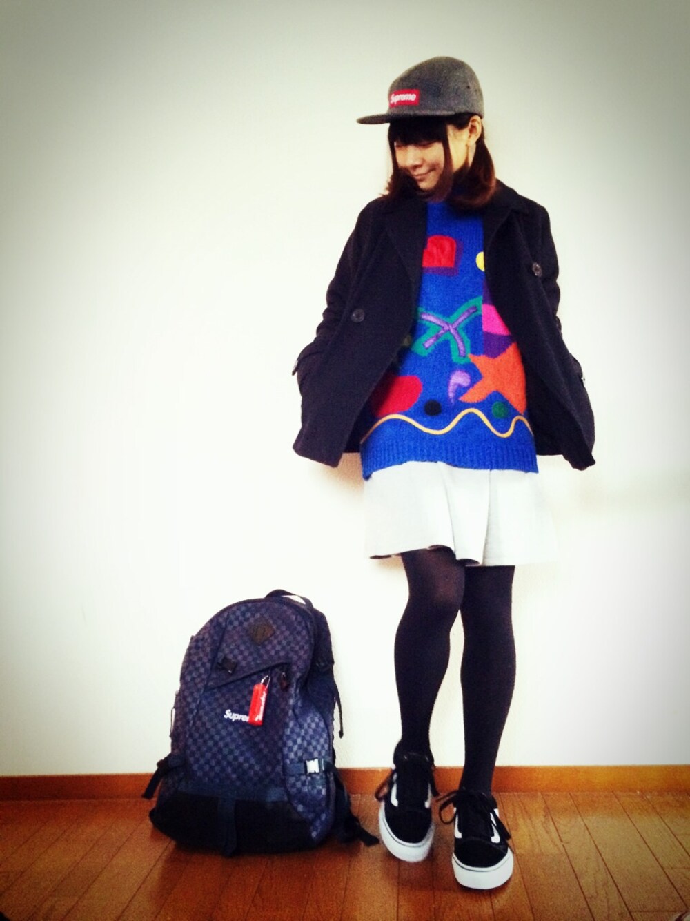 『青ニットは古着〜』 古着のニットってかわいいの多い気がする メンズの買うからだぼっと着てる p.s. supremeボックスロゴ並びます 寒すぎ