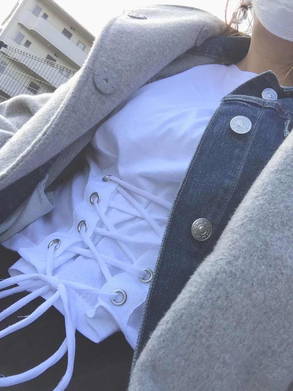 流行にノッて買ったZARAのTシャツ、つかえる… 半袖寒いので極暖の上に重ねて着ました。 その上にGジャン(古着)、kbfのコート(古着)を着て防寒ばっちり。 古着屋アイシテマス♡
