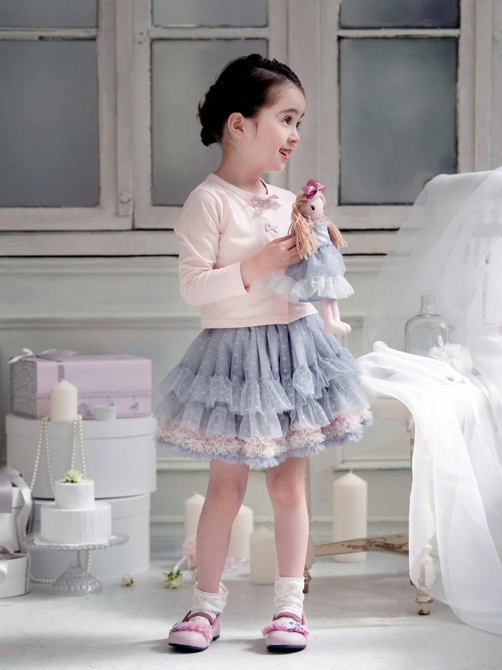 4月の誕生石【ダイヤモンド】の女の子の永遠の憧れをイメージしたチュチュ。 優しいピンクとキュートな水玉のチュールでプリンセス気分♪