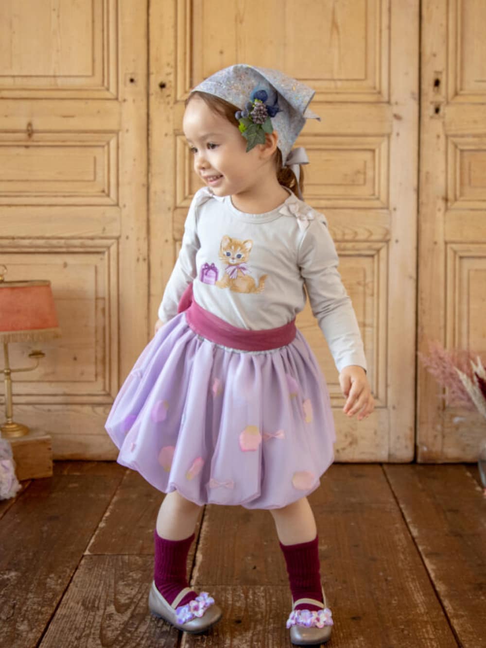 panpantutuのスカート「お花とリボンのバルーンスカート(M/90-110)」を使ったコーディネート
