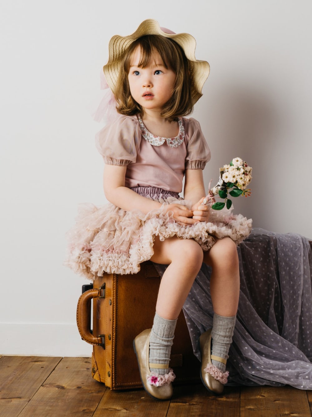 シーズン問わず活躍する、ふんわり落ち着いたカラーのチュチュ。ワントーンでまとまりのあるコーデに。