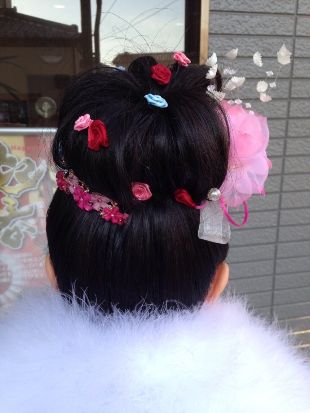 和装のお団子ヘアーになります。前髪はぱっつんです←