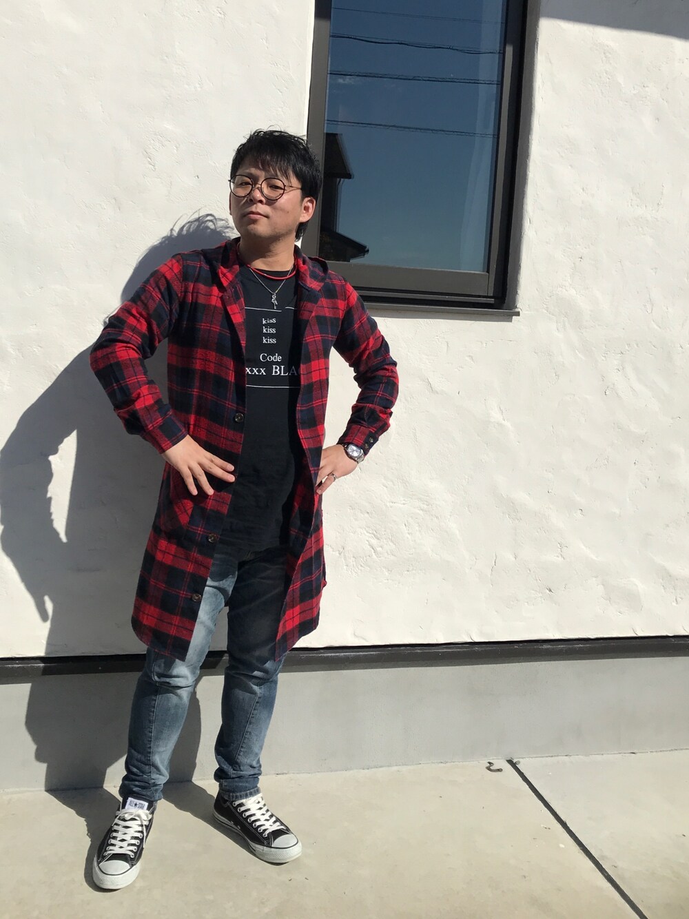 PANDAのサングラス「UV100%カット ボストン型クリアレンズサングラス|Zoff UV」を使ったコーディネート