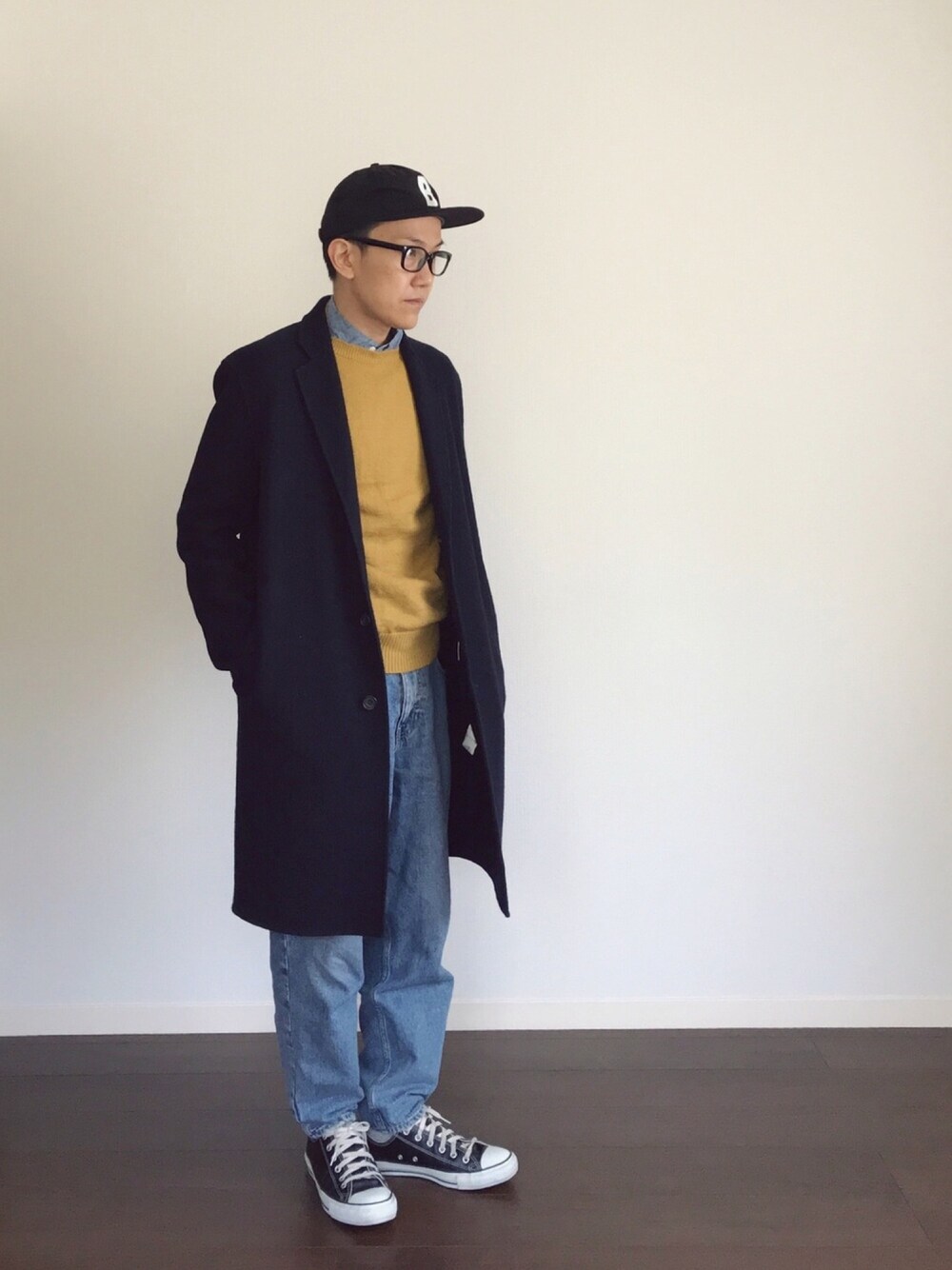 チェスターコートをデニムでカジュアルに合わせてみました。まだ寒いですね❄️ いつもイイね、saveありがとうございます👏