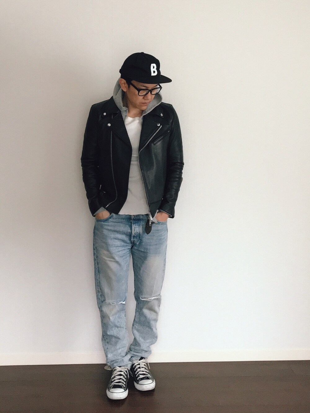 hinaのライダースジャケット「シープレザーWライダースジャケット」を使ったコーディネート