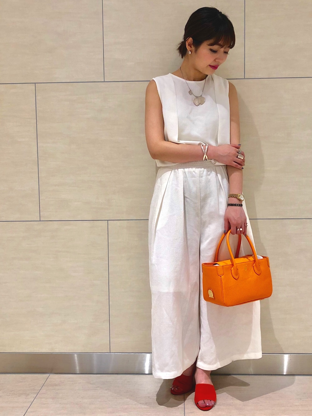 爽やか白×差し色オレンジ🍊🧡