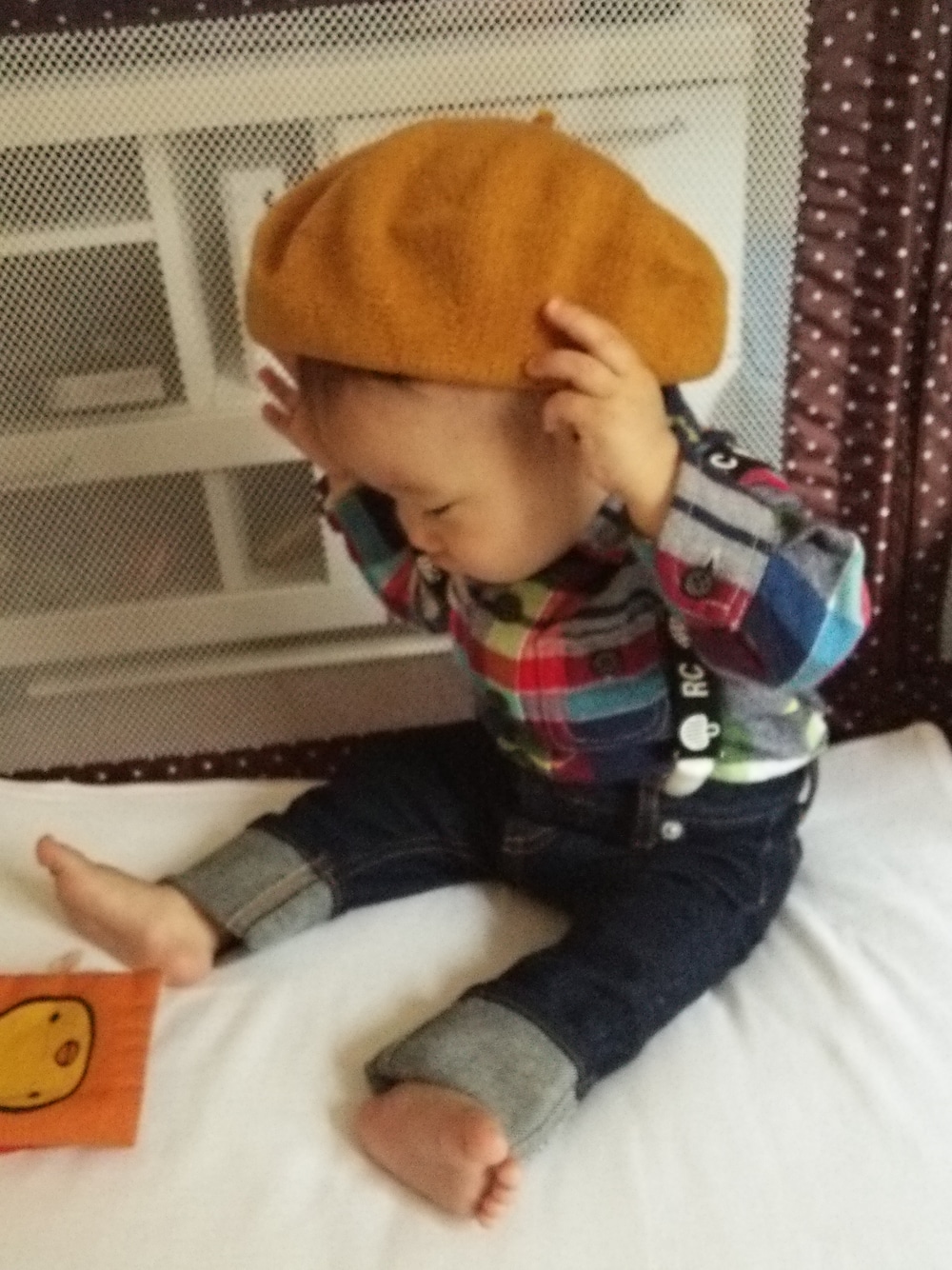 旦那の趣味に合わせるとボーイズコーデになる(ボーイズコーデ も可愛いから好きだけど!)旦那からはフリフリ禁止令なの(私はフリフリ大好きなの!)シャツロンパ70デニム12M。まだブカブカー