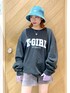 151cm/普通体型/X-girl オーバーサイズのスウェットとコンパクトボトムでスッキリとまとまったコーディネートです! スウェットトップスにショーツは子どもっぽくなりがちですが、足元をブーツにしたりヘアアレンジや小物を上手く使うことでかっこよくコーディネートができます♡