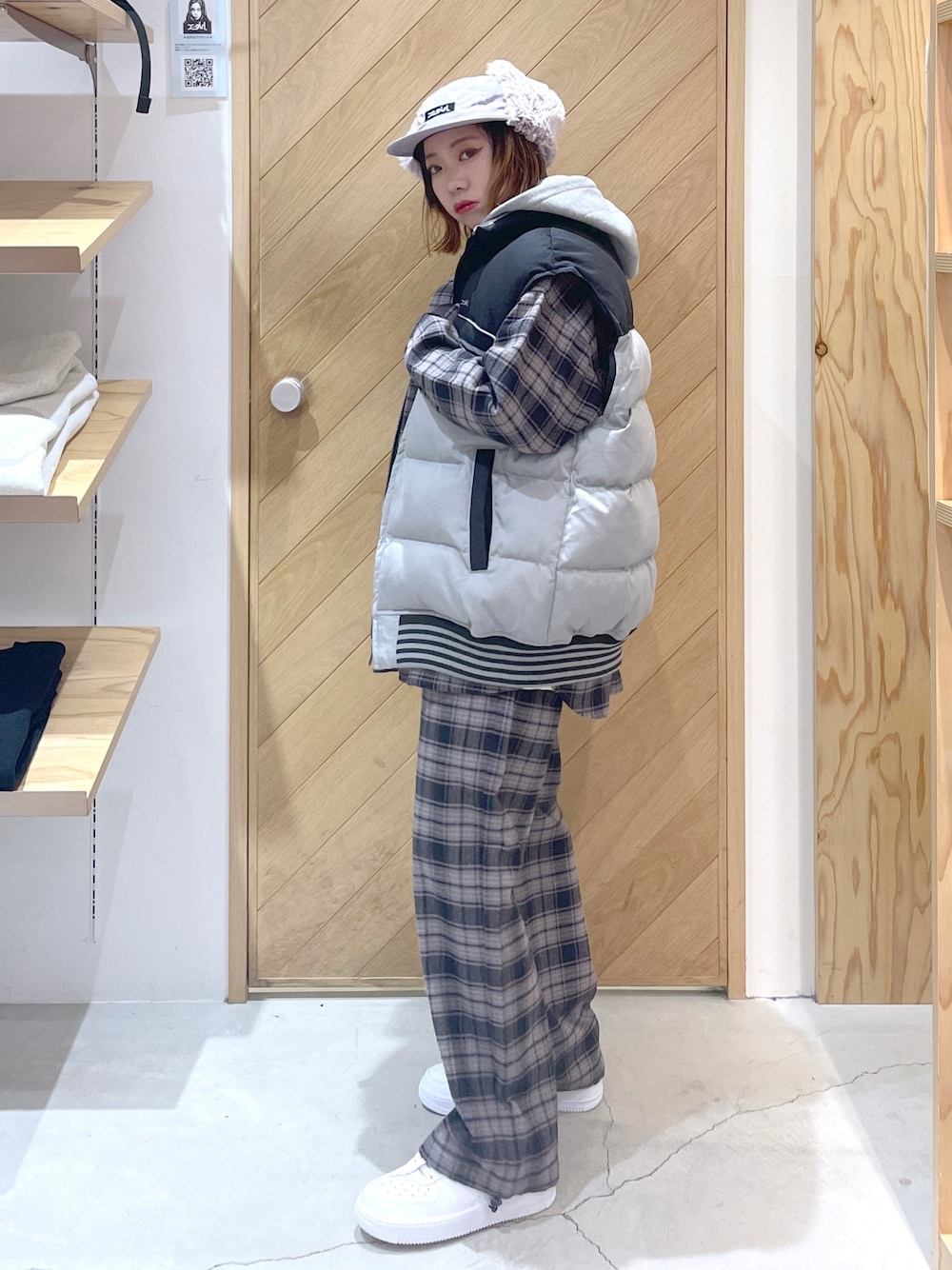 151cm/普通体型/X-girl 《普段着用サイズ 》 ・トップスM,XL ・ボトムスS ・足のサイズ 23.5cm 《今回着用サイズ》 ・ダウンベスト M ・シャツ S ・パンツ S ・インナー M ・帽子 ONESIZE ・スニーカー 23.5cm ベストはMサイズ着用です。 しっかりとボリュームがあるダウンベストはとっても暖かいので防寒にはぴったりです。 私は普段おもためのアウターを着ないので真冬でもこのベストで過ごせます。 丈はMサイズでお尻まですっぽり隠れるくらいの丈です。 フーディーやスウェットとの相性が良いので、普段よく着る方は一枚あるといつもとは違う雰囲気が出せますよ💘 シャツはSサイズでもオーバーサイズです。 私の身長でお尻まで全部隠れる丈です。 ボトムのウエストはゴム+紐付きなので幅広い体型の方に着ていただけます。 裾もコードがついていて絞ることができます。 私のように低身長でも長すぎることがないので安心してご購入いただけます。