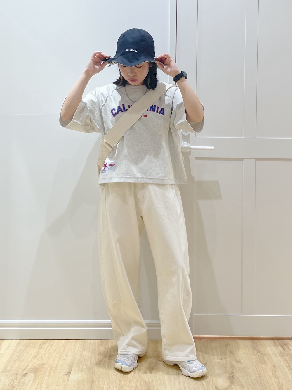 SAKI 🍣(MILKFED.福岡(ソラリアプラザ))のデニムパンツ「WIDE LEG DENIM PANTS」を使ったコーディネート