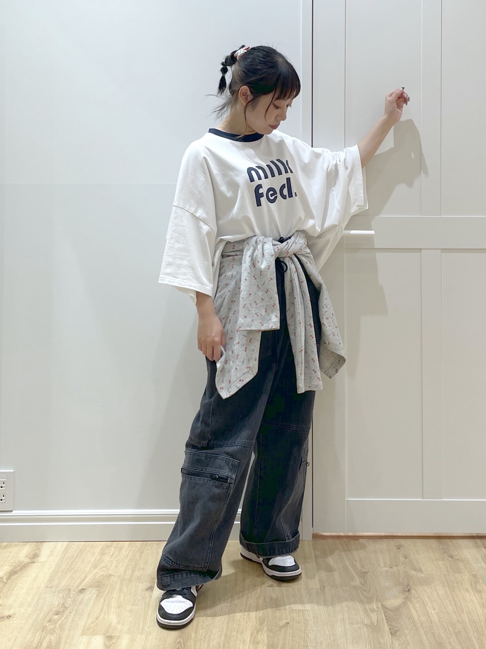 SAKI 🍣(MILKFED.福岡(ソラリアプラザ))のTシャツ/カットソー「CHERRY PATTERN WAFFLE CARDIGAN」を使ったコーディネート