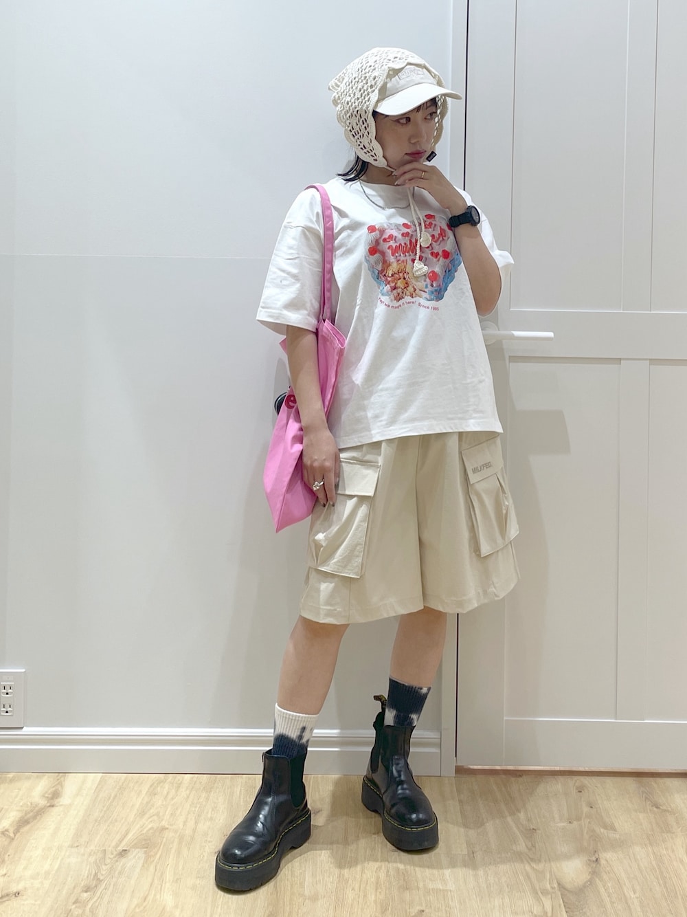 SAKI 🍣(MILKFED.福岡(ソラリアプラザ))のラッシュガード「MILKFED. × OP CARGO SHORTS」を使ったコーディネート