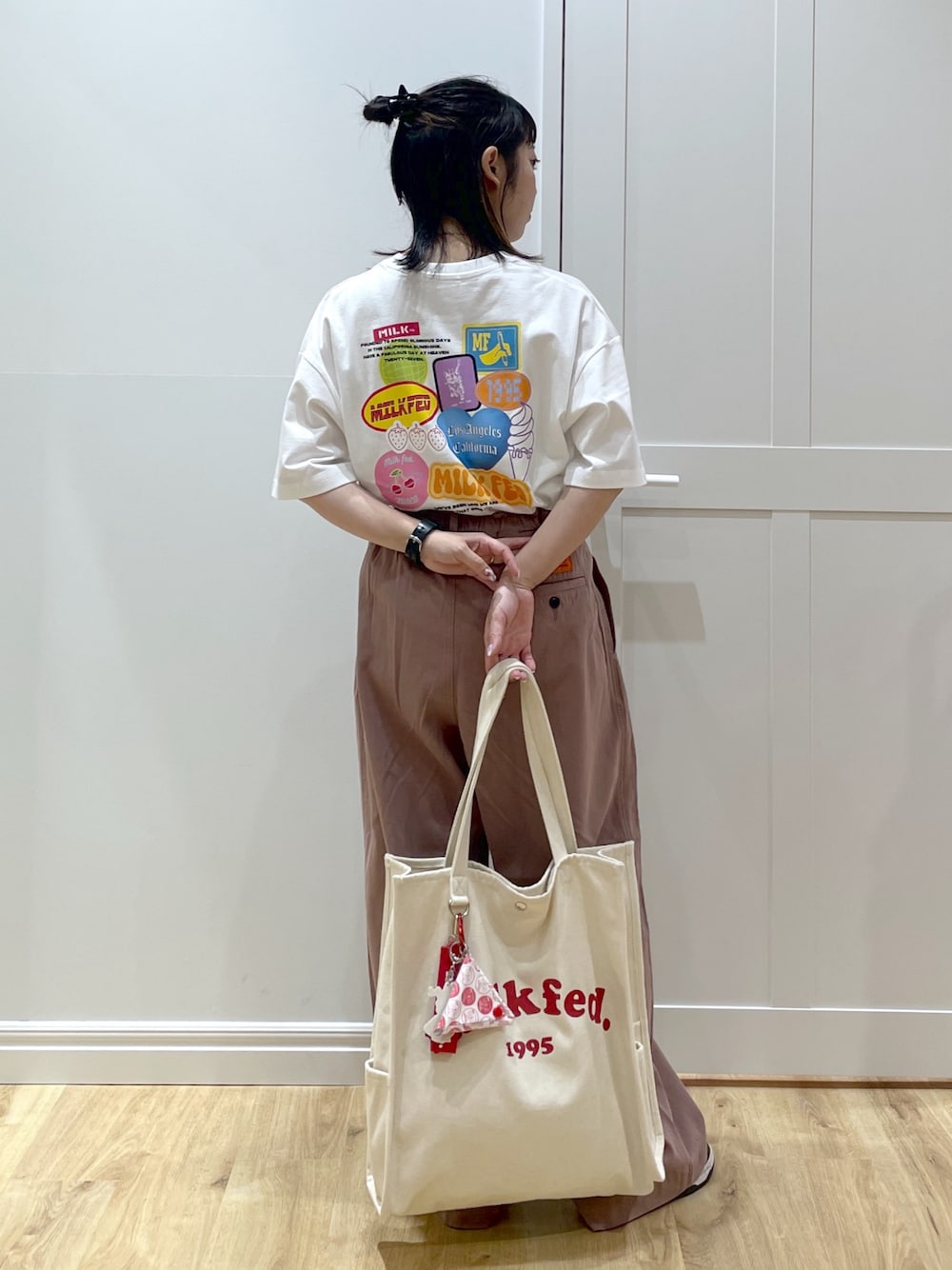 SAKI 🍣(MILKFED.福岡(ソラリアプラザ))のTシャツ/カットソー「STICKED LOGO S/S TEE」を使ったコーディネート