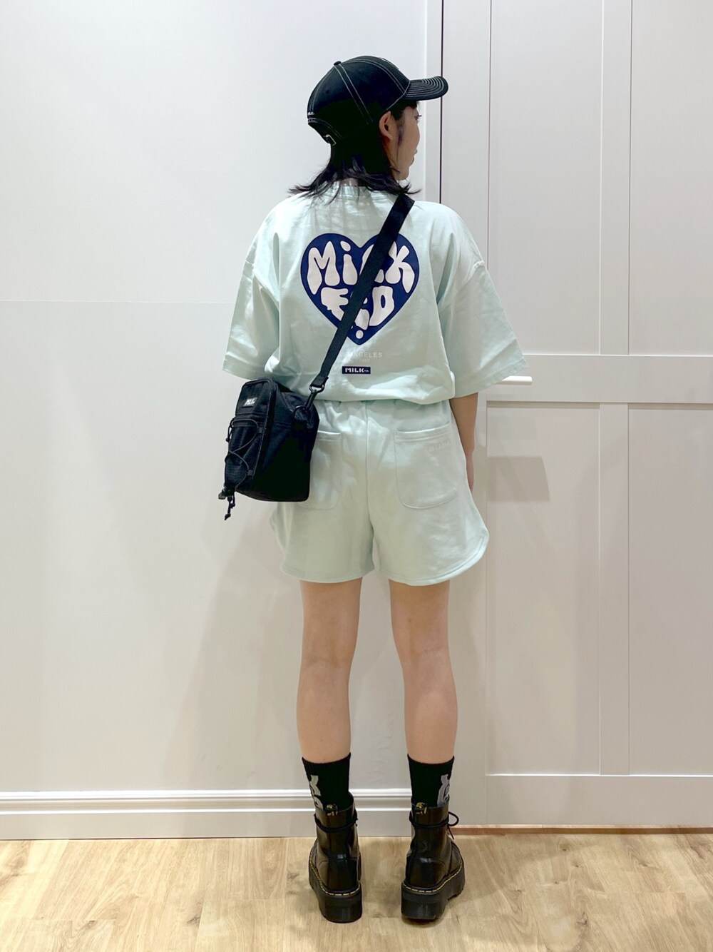 SAKI 🍣(MILKFED.福岡(ソラリアプラザ))のスウェットパンツ「STENCIL LOGO DAILY SWEAT SHORTS」を使ったコーディネート
