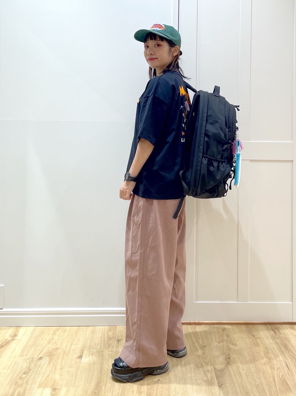 身長151cm/普通体型/骨格ストレート Instagram→@papi354_gg 《普段着用サイズ 》 ・トップスS,M,L ・ボトムスS ・足のサイズ 23.5cm 《今回着用サイズ》 ・Tシャツ M ・パンツ S ・帽子 ONESIZE ・バックパック 37リットル ____________________ 🧸トップス ⚫︎わたしの身長でもタックインした時にバックプリントが全部見えるのでバランスがとりやすいです🪽 ⚫︎Mサイズでお尻が半分隠れるくらいの丈です 🧸パンツ ●丈はmilkfed.の他のパンツと比べると長いです。私の身長でスニーカー合わせだとSサイズでロールアップ2回がジャスト丈です。 ●柔らかい生地とゆったりシルエットです♥ 🧸バックパック ⚫︎milkfed.で1番容量が大きいバックパックです!37リットルの大容量です。 ____________________