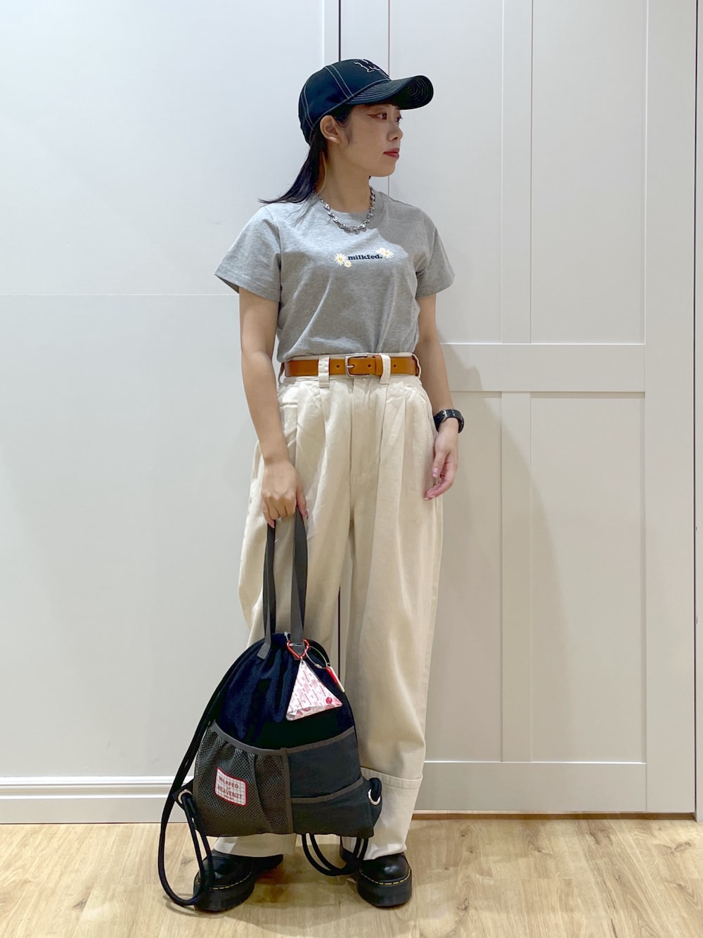 身長151cm/普通体型/骨格ストレート Instagram→@papi354_gg 《普段着用サイズ 》 ・トップスS,M,L ・ボトムスS ・足のサイズ 23.5cm 《今回着用サイズ》 ・Tシャツ S ・パンツ S ・帽子 ONESIZE ____________________ 🧸トップス ⚫︎コンパクトなサイズ感ですが肌にピタッと張り付くような感じでは無いのでとっても着やすいです◎ ⚫︎着用のMの丈は腰骨の上あたりでおへそは見えません。 🧸パンツ ⚫︎脚長効果のあるロールアップデニムです🦥 ⚫︎ウエストはジャストです ⚫︎太ももから裾までゆとりのあるシルエットなので下半身が気になる方も安心して着用できます🪽 ____________________