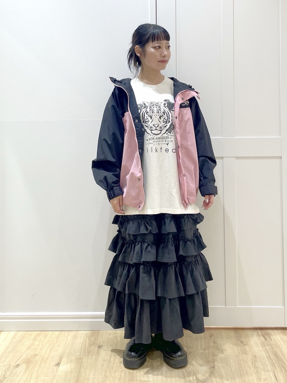SAKI 🍣(MILKFED.福岡(ソラリアプラザ))のスカート「SOLID DIRNDL SKIRT」を使ったコーディネート