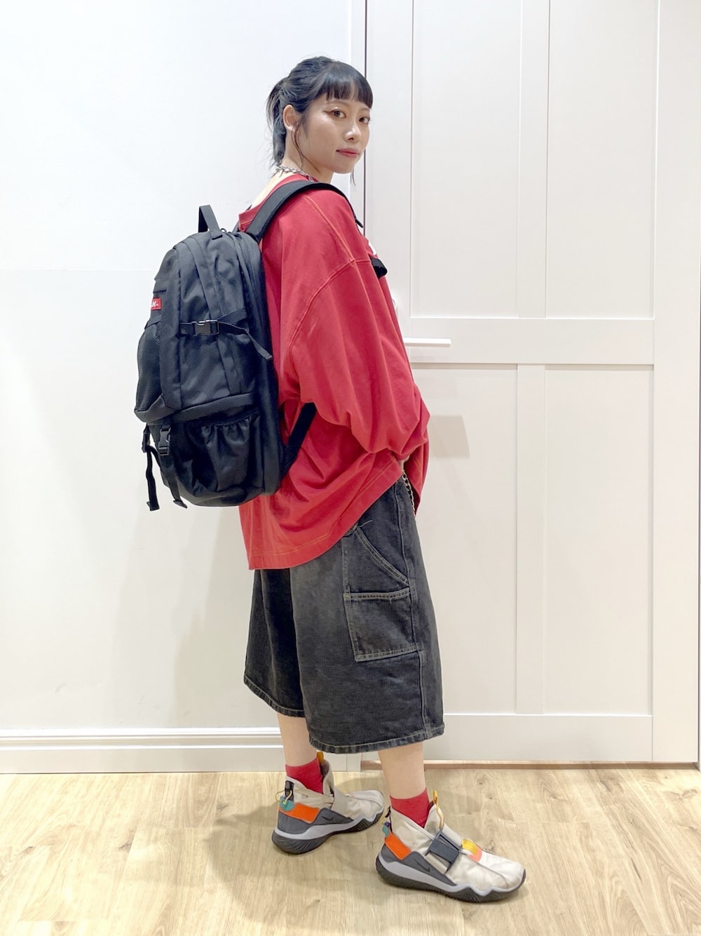 Instagram→@papi354_gg 身長151cm/普通体型/骨格ストレート 《普段着用サイズ 》 ・トップスS,M,L ・ボトムスS ・足のサイズ 23.5cm 《今回着用サイズ》 ・トップス ONESIZE ・パンツ S ・バックパック 32L ____________________ 🧸トップス ⚫︎毎年人気のスーパービッグシルエットのTシャツです! ⚫︎私のようにパンツとコーディネートしたり1枚で着ても可愛いです❤️🔥 ⚫︎私の身長で丈は膝上です。 🧸パンツ ⚫︎膝下の丈のゆるシルエットのハーフパンツです ⚫︎ウエストはジャストでタックインしてもシルエットがキレイなままです❤️🔥 ⚫︎オールシーズン使えます☀️ 🧸バックパック ⚫︎32リットル入る大容量で通勤通学、旅行用としてもしっかり使えます ⚫︎店舗でも人気です!在庫のあるうちにぜひ🪽 ____________________