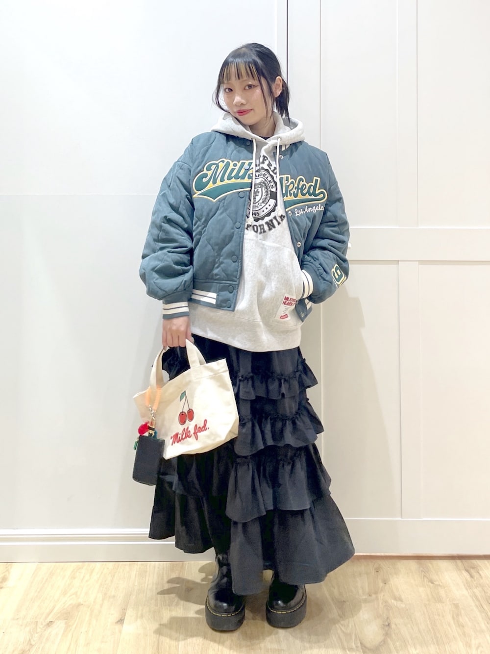 SAKI 🍣(MILKFED.福岡(ソラリアプラザ))のパーカー「MILKFED. × CHAMPION COLLEGE LOGO SWEAT HOODIE」を使ったコーディネート