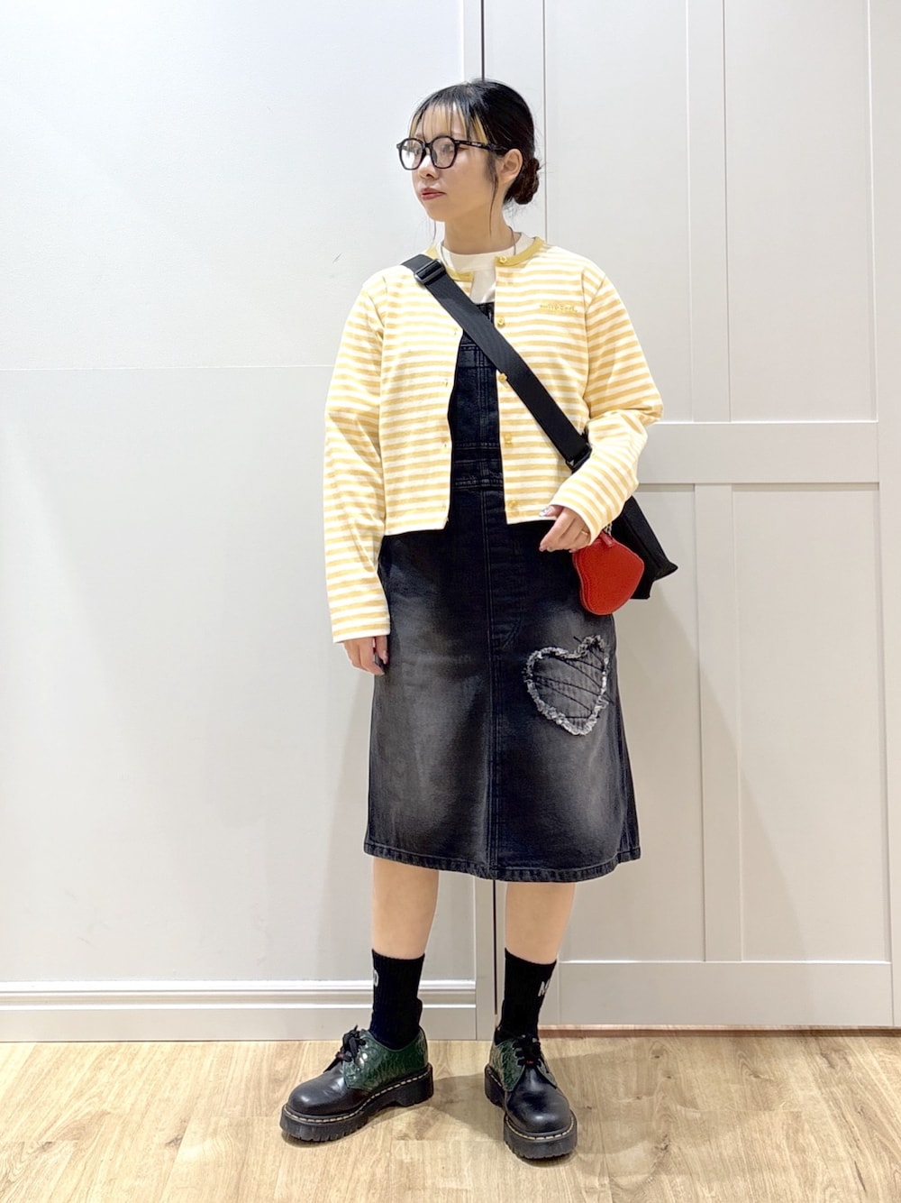 SAKI 🍣(MILKFED.福岡(ソラリアプラザ))のサロペット/オーバーオール「PATCH SALOPETTE SKIRT」を使ったコーディネート